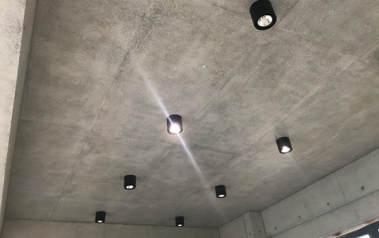 混凝土基面灌注良好、透徹,針對小部分瑕疵進行修復、著色透明防護,允許保留自然瑕疵。